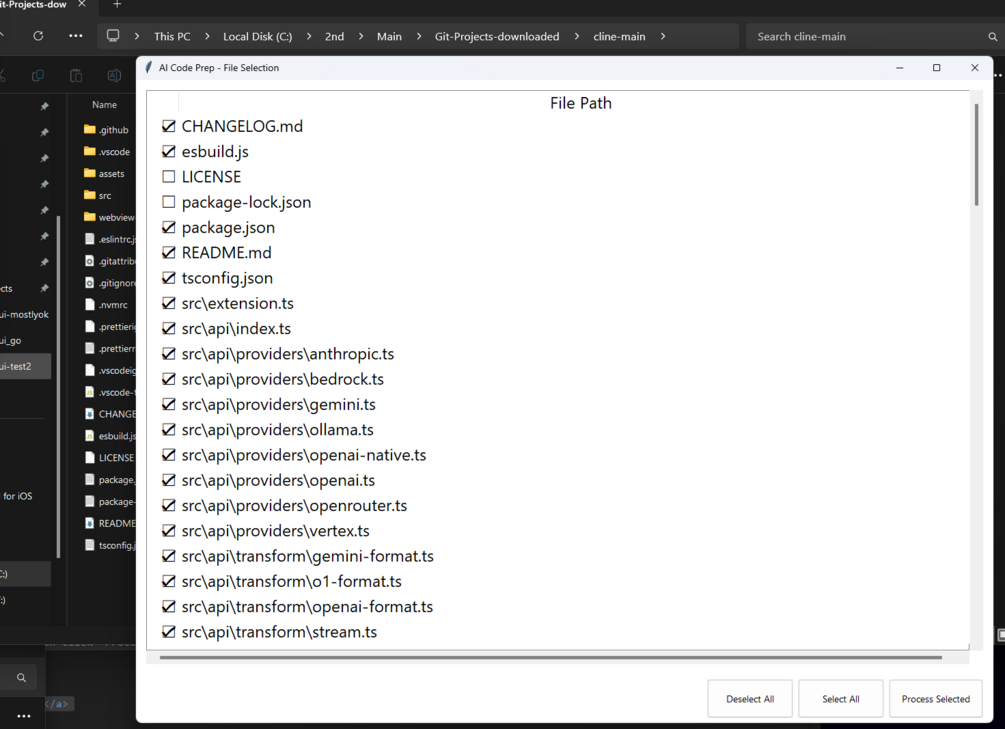Then you are like "ah.. ugh" and have to copy lots of code to a AI chat (Gemini in AI studio, ChatGPT, Openrouter, Claude 3.5 or 3.7 Sonnet, etc) and you have to copy and paste each file over and over, it sucks. That's why I created this little app.