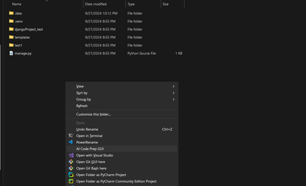 Right-Click Context Menu: After installation, you can right-click in any Windows folder, click AI Code Prep GUI, to open the GUI and auto-detect code files.